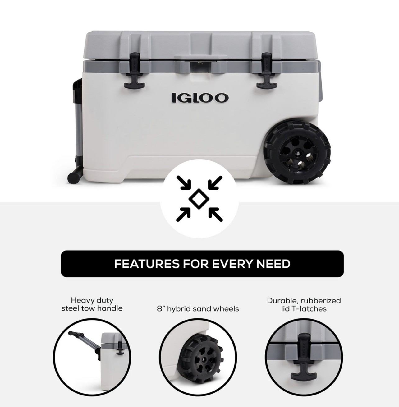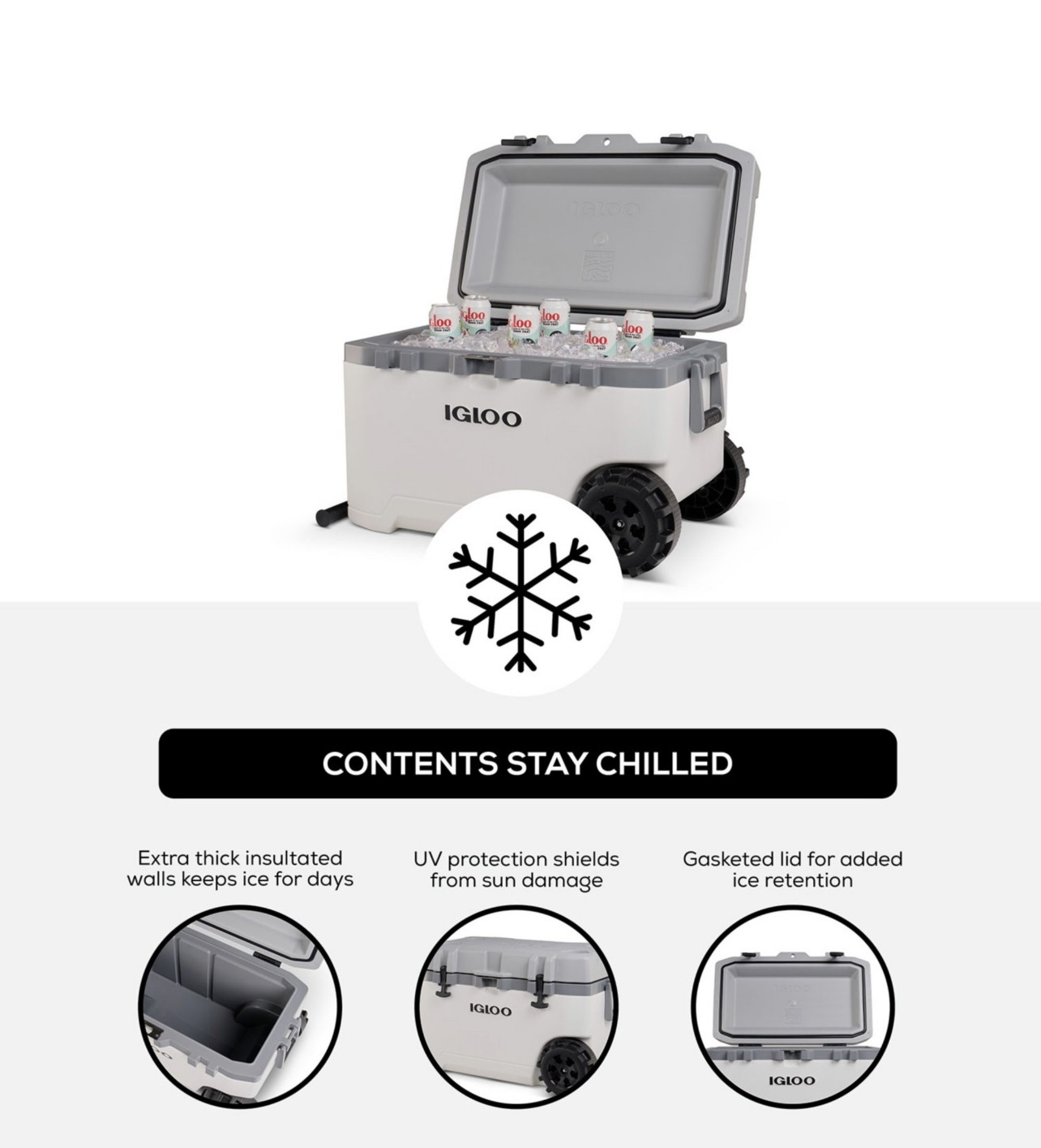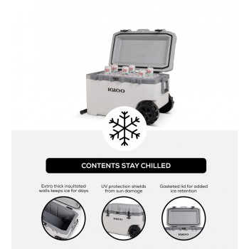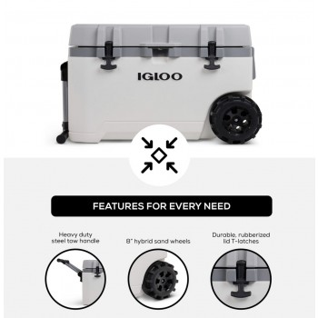 Are the outdoors calling? You need the Igloo Rugged Performance Roller Cooler. From advanced, long-lasting ice retention and a large capacity to little features that go a long way, Igloo built this wheeled ice chest to see you through your many outdoor adventures or simply your everyday events, no matter what terrain you must cover to get there–all while keeping your food and drinks fresh. And it’s made at Igloo’s manufacturing plant in Texas.